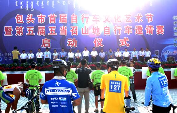 (交流会现场启动包头市首届自行车文化艺术节暨第五届五当召山地自行车越野赛)
