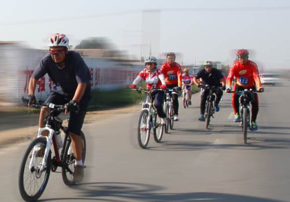 (第五届五当召山地自行车越野赛选手比赛现场)
