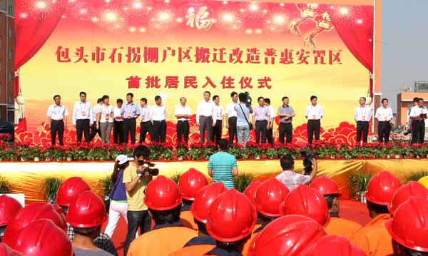 (交流会召开的同时,石拐区举行了棚户区搬迁改造普惠安置区首批居民入住仪式)