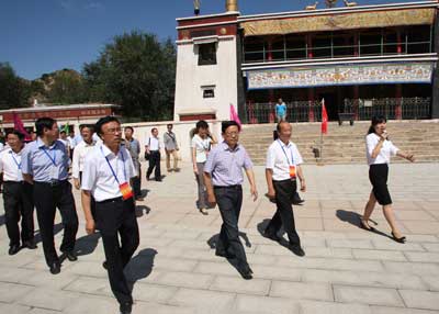 (参会人员在石拐区五当召旅游风景区参观摄影作品) 8月29日在固阳县召开了“全市第五届文明城市建设经验交流会”,自治区副、市委书记郭启俊,市领导孙炜东、董汉忠、苏誉、程刚、刘德君、徐国铭、索耀乐、施文学、孙红梅、金满仓、夏先德、白志强、张晔,市政府秘书长王惠明,市政协秘书长王茂荣出席会议。市委副书记、政法委书记苏誉主持会议。