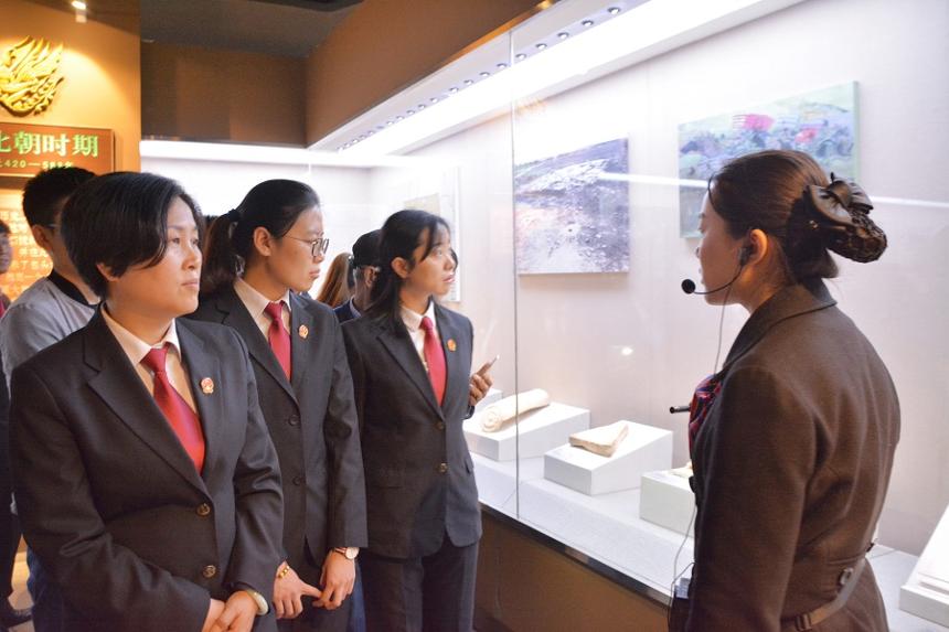 在博物馆展厅内,干警们参观了《包头历史文物陈列》、《燕家梁元代遗址考古成果展》、《藏传佛教唐卡艺术陈列》、《史话石说——内蒙古古代岩画陈列》,大家认真聆听讲解员的讲解,通过一件件文物、一幅幅岩画,进一步了解包头这片神奇土地上波澜壮阔的历史轨迹,仿佛置身于广袤的草原、巍峨的青山之中,在这里不仅体味到包头昨天的魅力,更获得鉴古惜今的认知。